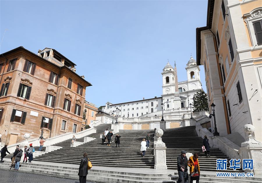 3月10日,在意大利首都羅馬,西班牙臺(tái)階上游客明顯減少。新華社記者程婷婷攝