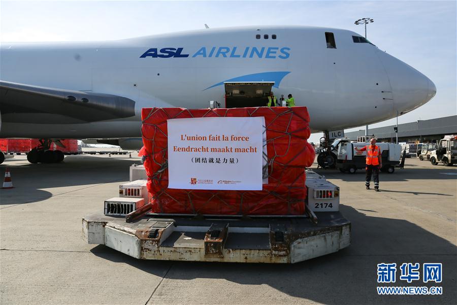 來自中國(guó)的30萬只口罩當(dāng)?shù)貢r(shí)間16日中午運(yùn)抵比利時(shí)列日機(jī)場(chǎng)。 新華社記者 張鋮 攝