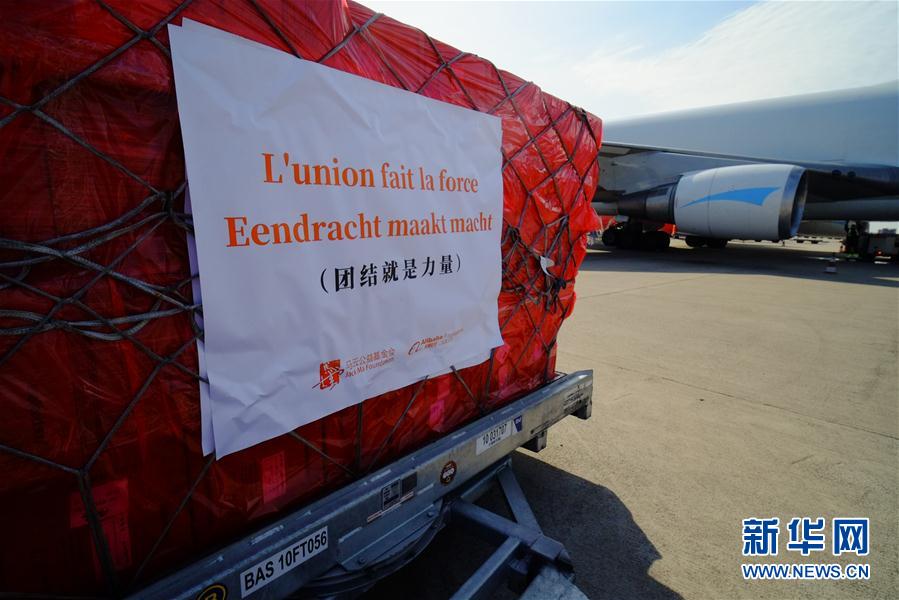 來自中國的30萬只口罩當(dāng)?shù)貢r(shí)間16日中午運(yùn)抵比利時(shí)列日機(jī)場。 新華社記者 張鋮 攝