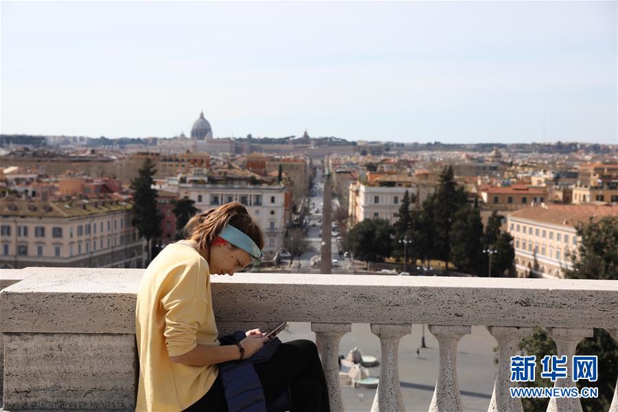 3月10日,在意大利首都羅馬,一名女子在蘋(píng)丘坐著休息。新華社記者程婷婷攝