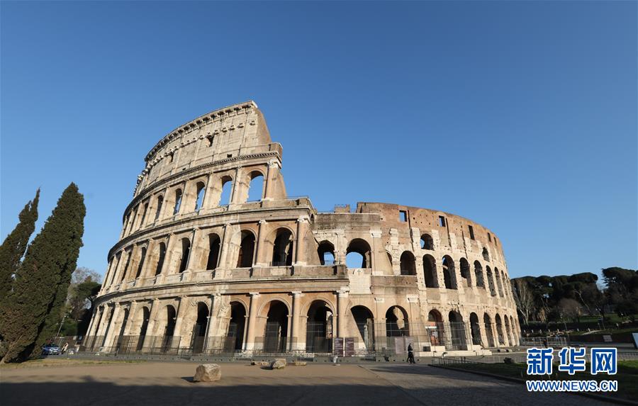 3月16日,在意大利首都羅馬,斗獸場(chǎng)因疫情關(guān)閉。新華社記者程婷婷攝