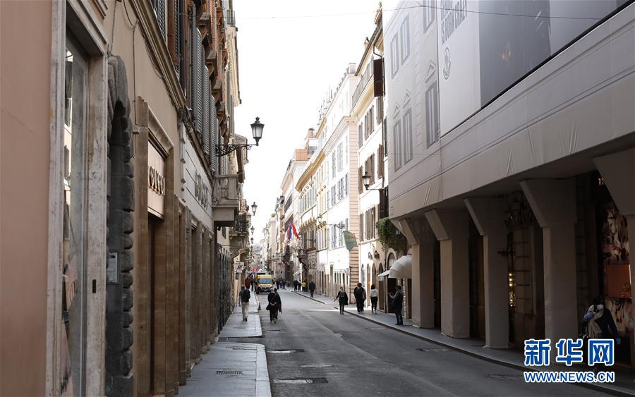 3月10日,在意大利首都羅馬,孔多蒂街上人流量明顯減少。新華社記者程婷婷攝