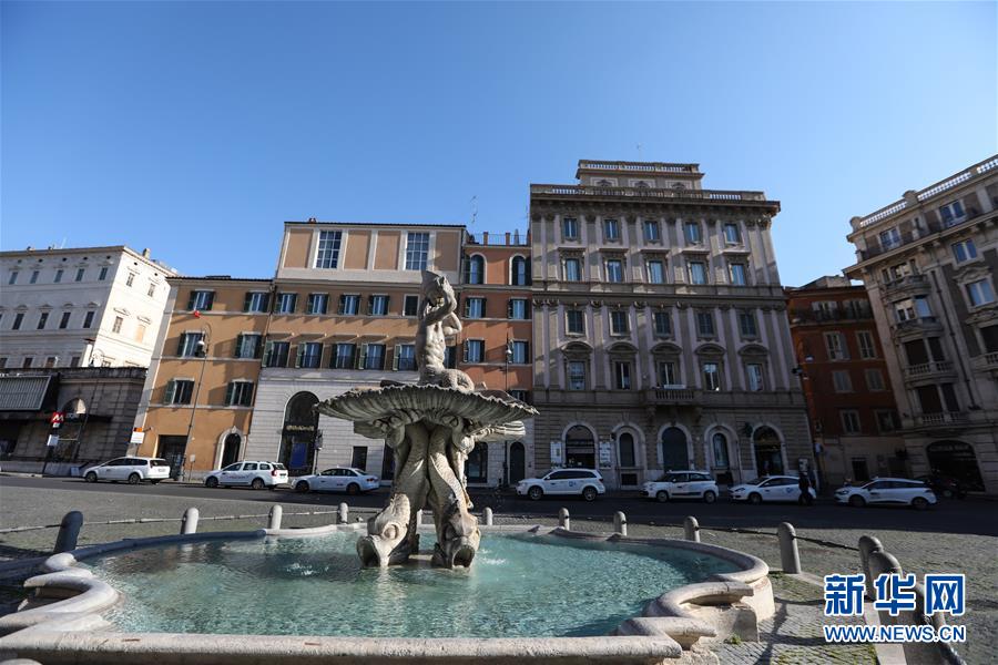 3月16日,在意大利首都羅馬,巴貝里尼廣場(chǎng)空曠無(wú)游人。新華社記者程婷婷攝