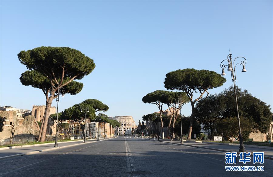 3月16日,在意大利首都羅馬,帝國(guó)廣場(chǎng)大道上行人寥寥。新華社記者程婷婷攝
