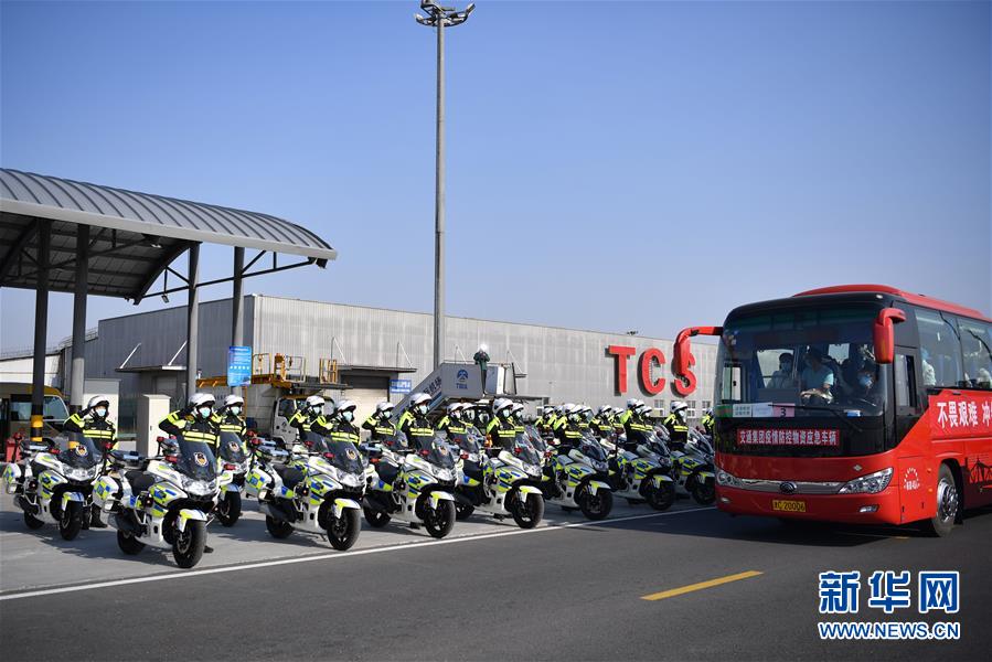 3月17日,醫(yī)療隊隊員乘坐大巴車離開天津濱海國際機場。新華社記者李然攝