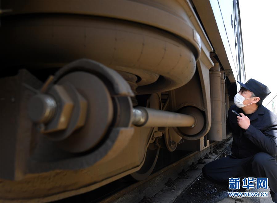 3月19日,鄭州車輛段庫檢車間值班主任張伯季在對(duì)客車下部設(shè)施進(jìn)行檢查。新華社記者 李安 攝