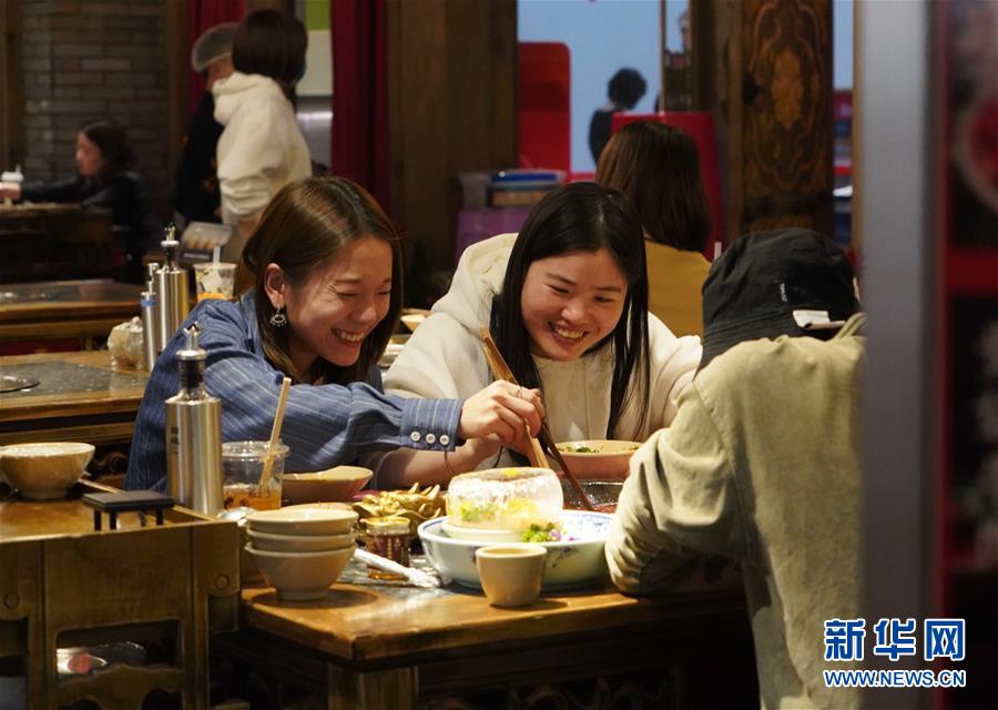 3月21日,在四川省成都市的一家火鍋店內(nèi),顧客在就餐。近日,在做好新冠肺炎疫情防控措施的基礎(chǔ)上,四川省成都市的火鍋店逐漸恢復(fù)營(yíng)業(yè)。新華社記者李夢(mèng)馨攝