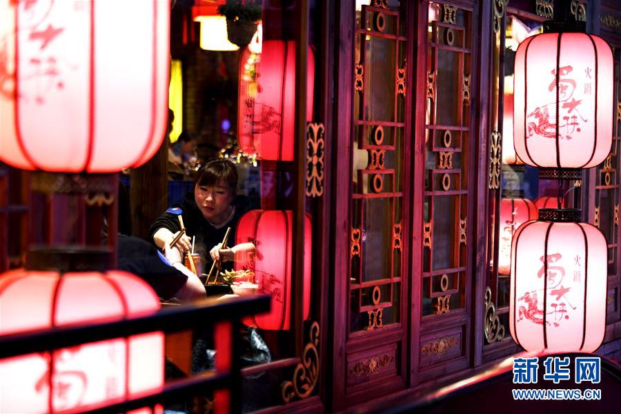 3月21日,在四川省成都市錦江區(qū)商業(yè)場街的一家火鍋店內(nèi),顧客在就餐。近日,在做好新冠肺炎疫情防控措施的基礎(chǔ)上,四川省成都市的火鍋店逐漸恢復(fù)營業(yè)。新華社記者王曦攝