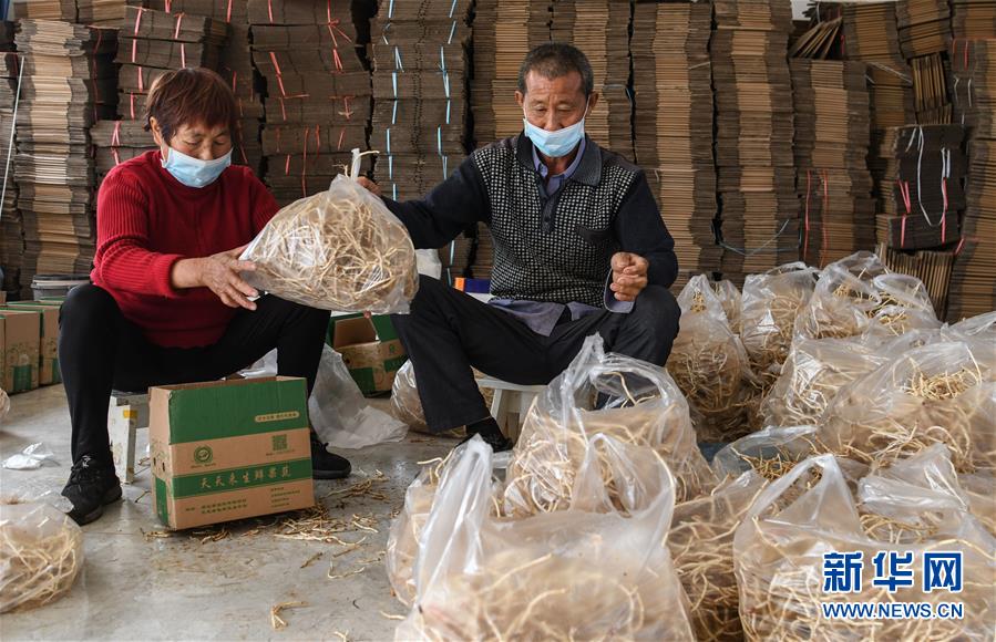 湖北當(dāng)陽(yáng)市壩陵辦事處群華村村民宋發(fā)林(右)和妻子在農(nóng)產(chǎn)品合作社包裝產(chǎn)品,準(zhǔn)備通過電商外銷(3月21日攝)。近日,湖北當(dāng)陽(yáng)市農(nóng)業(yè)生產(chǎn)和農(nóng)產(chǎn)品加工加速恢復(fù)。截至3月19日,當(dāng)陽(yáng)市86家規(guī)上農(nóng)產(chǎn)品加工企業(yè)復(fù)工復(fù)產(chǎn)率為84.9%,51家農(nóng)業(yè)產(chǎn)業(yè)化重點(diǎn)龍頭企業(yè)有48家復(fù)工復(fù)產(chǎn),占比達(dá)94.1%。新華社記者程敏攝