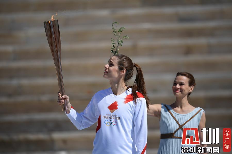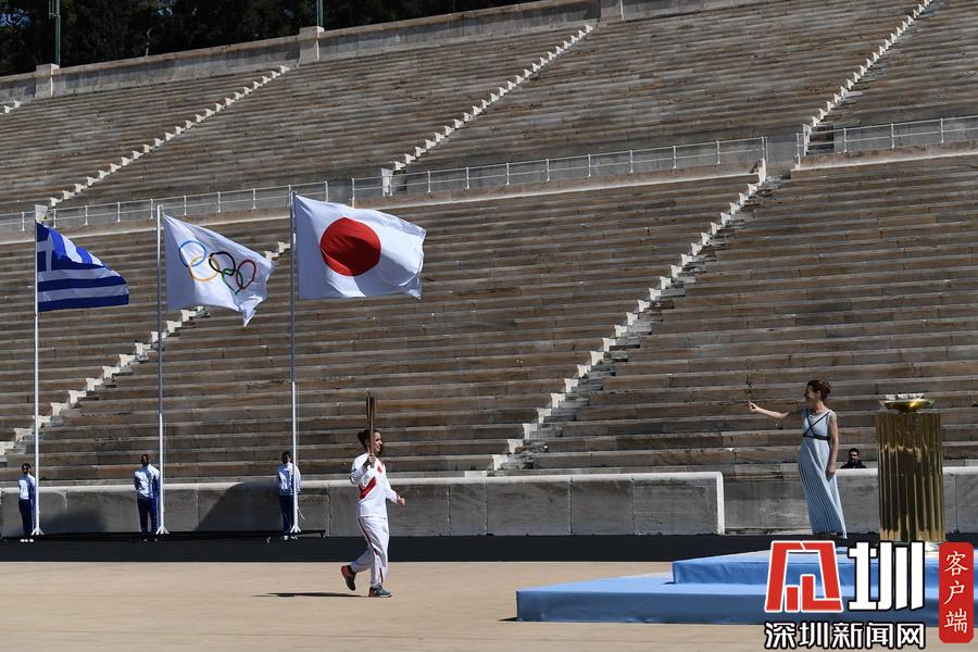 2020年3月18日,2020年東京奧運(yùn)會(huì)火炬交接儀式在希臘雅典帕納辛奈科體育場(chǎng)舉行。