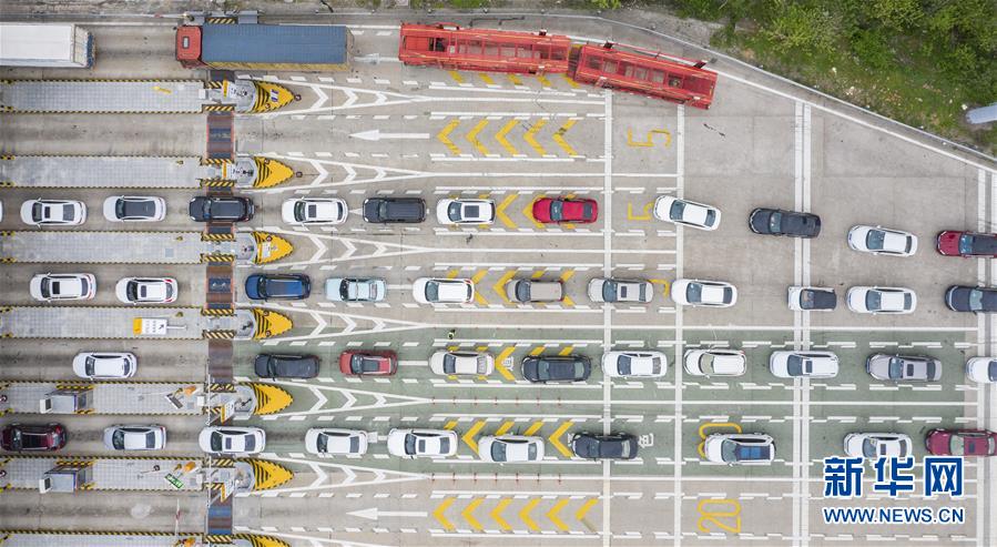 3月24日,在武漢西高速收費(fèi)站交通卡點(diǎn),返漢車輛排隊(duì)等候入城(無(wú)人機(jī)照片)。當(dāng)日,湖北省新冠肺炎疫情防控指揮部發(fā)布通告說(shuō),湖北省除武漢市以外地區(qū),將于3月25日起解除離鄂通道管控,武漢市將于4月8日起解除離漢離鄂通道管控措施。隨著近日武漢部分企業(yè)逐漸復(fù)產(chǎn)復(fù)工,進(jìn)入武漢的返城務(wù)工人員陸續(xù)增多,車輛在武漢西高速收費(fèi)站交通卡點(diǎn)有序排隊(duì)返回武漢。工作人員對(duì)返城人員檢查體溫,并核查證明健康的“綠碼”和身份證后放行。新華社記者才揚(yáng)攝