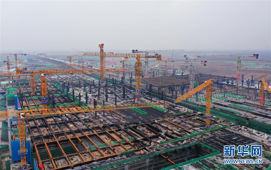 這是3月25日拍攝的京雄城際鐵路雄安站施工現(xiàn)場(chǎng)(無(wú)人機(jī)照片)。新華社記者楊世堯攝