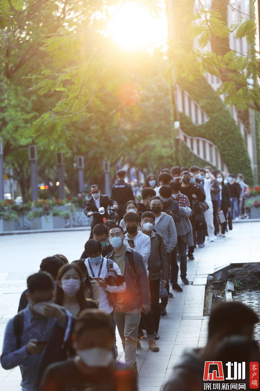 由于下班高峰客流量較大,“人龍”排到一旁的科技園文化廣場(chǎng),形成“蛇餅”隊(duì)伍,秩序卻十分井然。