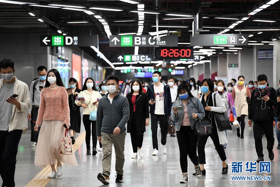 3月18日晚高峰時(shí)段,在深圳地鐵車公廟站,乘客按照車站指示牌進(jìn)站。新華社記者梁旭攝