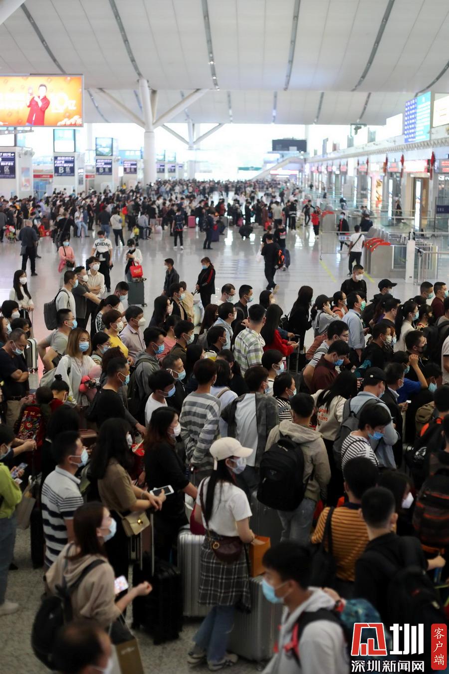 2020年3月28日,廣東深圳,周末的深圳北站客流量增大。