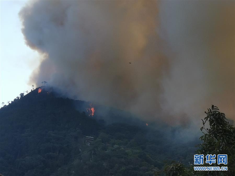 這是3月31日在四川省西昌市邛海畔拍攝的瀘山火場(chǎng)畫面。新華社記者惠小勇攝