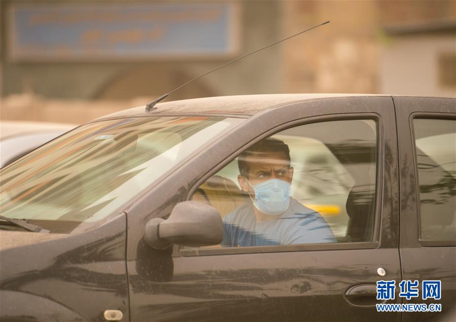 這是4月5日在埃及首都開羅拍攝的戴口罩的司機(jī)。新華社記者鄔惠我攝