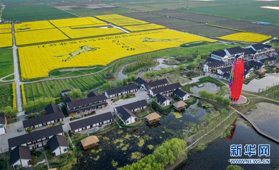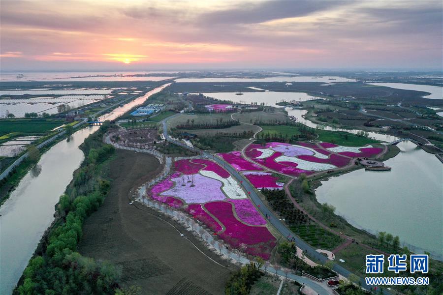這是4月6日拍攝的白馬湖風光(無人機全景照片)。近日,江蘇省淮安市白馬湖畔春花綻放,景色怡人。白馬湖地處淮河流域下游,東貫大運河,西倚洪澤湖,南北分別銜接淮河入江水道和入海水道,湖泊水域面積113平方公里,是全國15個生態(tài)良好重點保護湖泊之一。 新華社記者 楊磊 攝