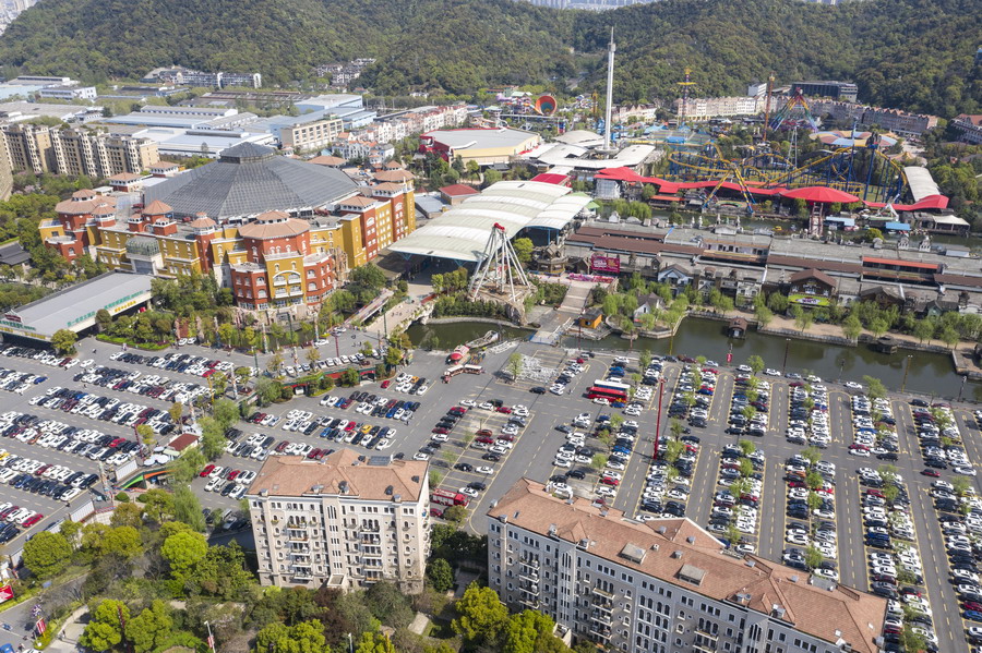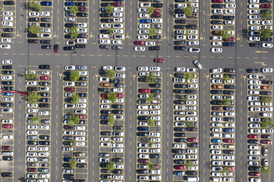 2019年4月6日,浙江杭州,清明小長(zhǎng)假的第二天,迎來(lái)出游高峰,各大景區(qū)停車場(chǎng)都趨于飽和。圖為位于蕭山區(qū)的杭州樂(lè)園停車場(chǎng),停滿了大大小小的車輛。