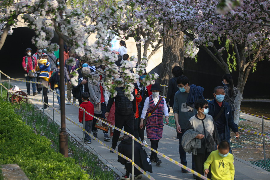 4月6日是清明小長(zhǎng)假的最后一天,在元大都遺址公園內(nèi)海棠花已全部盛開(kāi),形成片片海棠花溪,景色絕美。市民游客置身其中,感受春意盎然的氛圍。市民游客紛紛拍照留念,甚至不乏有身著漢服的小姐姐,在園內(nèi)人流稀少處,迅速摘戴口罩拍下了美照,“C位出道“。
