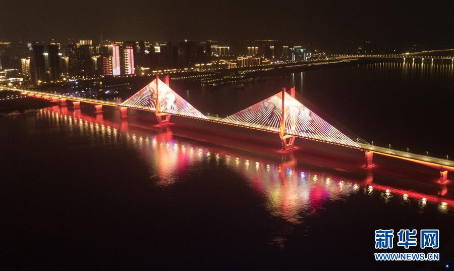 4月8日零時(shí)起,武漢市正式解除離漢離鄂通道管控措施,全市景觀照明開(kāi)啟(無(wú)人機(jī)拍攝)。新華社記者程敏攝