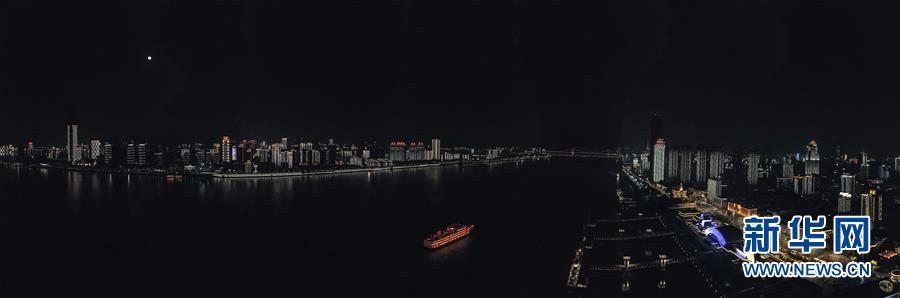 4月8日零時起,武漢市正式解除離漢離鄂通道管控措施,全市景觀照明開啟(無人機拍攝)。新華社記者程敏攝