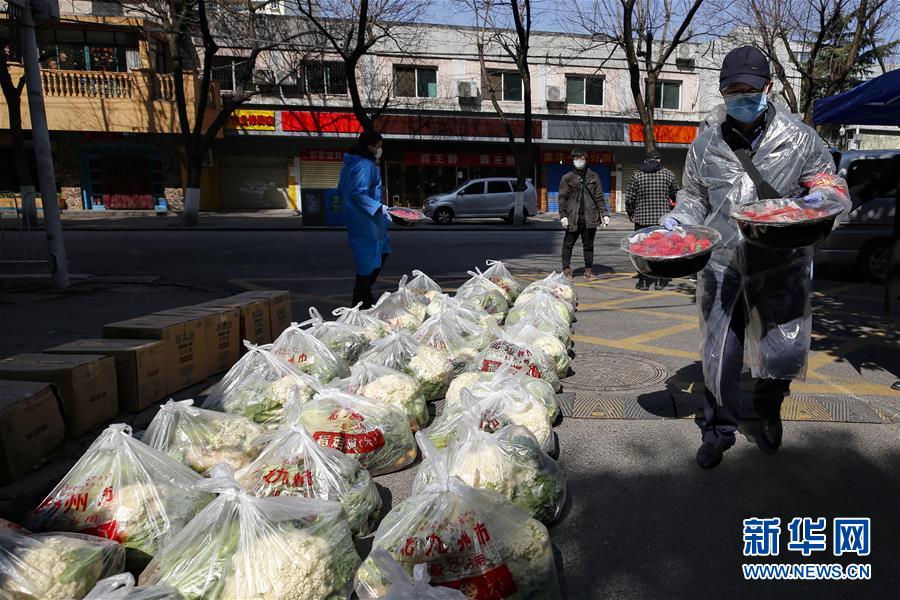 2月20日,湖北省武漢市下沉花橋社區(qū)的干部在搬運(yùn)居民訂購(gòu)的草莓。 新華社記者 沈伯韓 攝