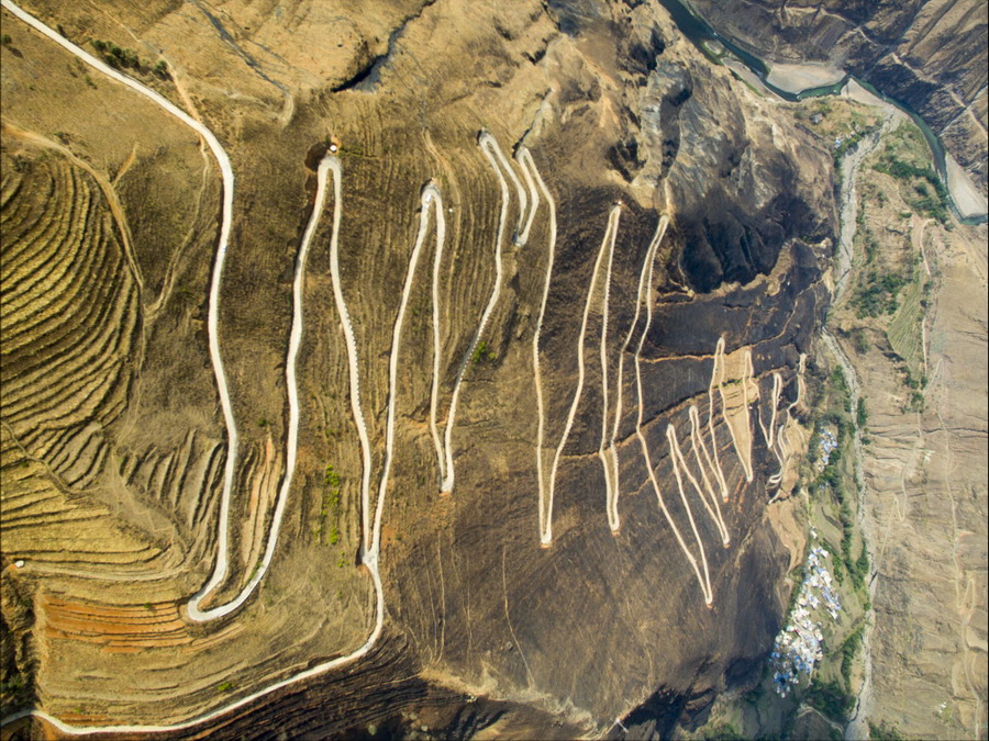 航拍云南山區(qū)“魔鬼公路” 在原地盤旋海拔下降1200米