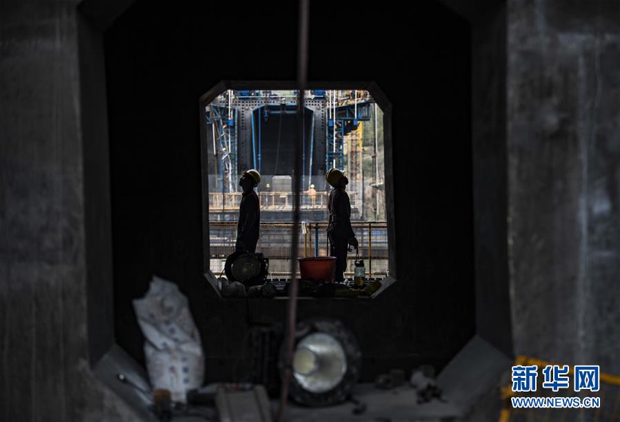 4月8日,兩名中鐵四局職工安裝架設鋼桁梁,每節(jié)鋼桁梁間的精度需要達到毫米級才能保證安裝到位。新華社記者江文耀攝