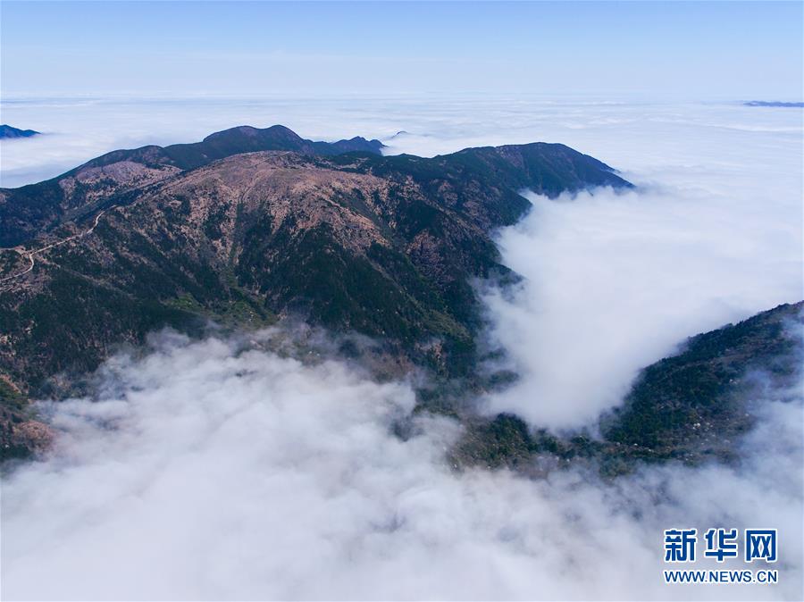 武夷山國家公園最高峰黃崗山云霧繚繞(4月1日攝,無人機照片)。新華社記者姜克紅攝