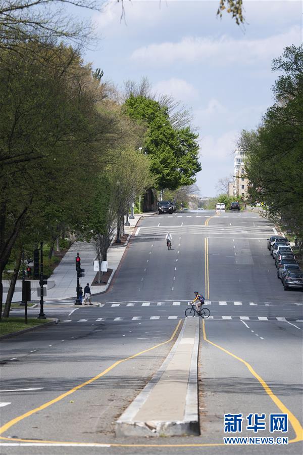4月8日,在美國首都華盛頓,市民在空曠的街道上騎行。美國約翰斯·霍普金斯大學(xué)8日發(fā)布的新冠疫情最新統(tǒng)計(jì)數(shù)據(jù)顯示,美國確診病例超過40萬例。美國目前是全球確診病例最多的國家。數(shù)據(jù)顯示,截至美國東部時(shí)間8日12時(shí)30分(北京時(shí)間9日0時(shí)30分),美國新冠確診病例升至401166例,死亡12936例。新華社記者劉杰攝