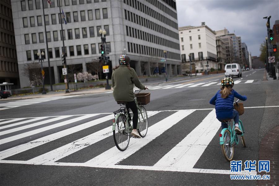 4月8日,在美國首都華盛頓,市民在空曠的街道上騎行。美國約翰斯·霍普金斯大學(xué)8日發(fā)布的新冠疫情最新統(tǒng)計(jì)數(shù)據(jù)顯示,美國確診病例超過40萬例。美國目前是全球確診病例最多的國家。數(shù)據(jù)顯示,截至美國東部時間8日12時30分(北京時間9日0時30分),美國新冠確診病例升至401166例,死亡12936例。新華社記者劉杰攝