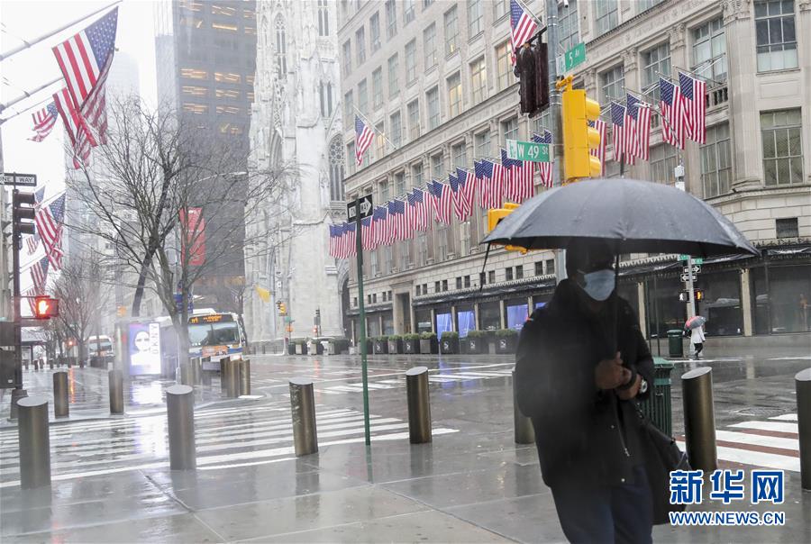 3月19日,在美國紐約曼哈頓,行人走在空曠的第五大道上。新華社記者王迎攝