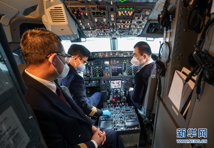 4月8日,東方航空MU2527飛行員在做飛行準(zhǔn)備。新華社記者程敏攝