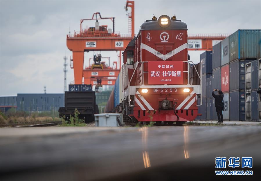 3月28日,開往德國杜伊斯堡的中歐(武漢)班列從中鐵聯(lián)集武漢中心站駛出。3月28日上午10點,中歐班列(武漢)X8015/6次運載50只集裝箱從中鐵聯(lián)集武漢中心站始發(fā)。班列將從阿拉山口出境,預計15天后抵達德國杜伊斯堡。這是自疫情防控以來,從武漢開出的首趟中歐班列,標志著中歐班列(武漢)恢復常態(tài)化運營。新華社記者肖藝九攝