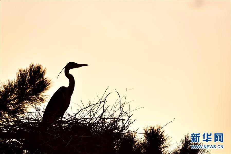 春日,大批蒼鷺在山西省呂梁市方山縣積翠鄉(xiāng)的樹林之中飛舞嬉戲,構(gòu)成一幅幅和諧生態(tài)畫卷。新華社發(fā)(劉亮亮攝)