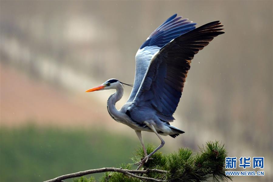這是在呂梁市方山縣積翠鄉(xiāng)拍攝的蒼鷺(4月14日攝)。新華社記者曹陽(yáng)攝