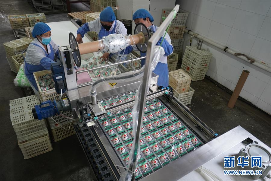 4月15日,在江蘇高郵鴨集團(tuán)生產(chǎn)車間,工人整理塑封包裝好的咸鴨蛋?!案哙]鴨蛋”是江蘇高郵的特色農(nóng)業(yè)名片。近年來,當(dāng)?shù)卦诹挤N繁育、生態(tài)養(yǎng)殖、產(chǎn)品加工等方面加大力度,推動高郵鴨蛋品牌化建設(shè),讓小鴨蛋成為帶動農(nóng)戶致富的大產(chǎn)業(yè)。2019年,高郵市共計生產(chǎn)熟制鴨蛋產(chǎn)品近11.2億枚,年產(chǎn)值近17.68億元。新華社記者季春鵬攝