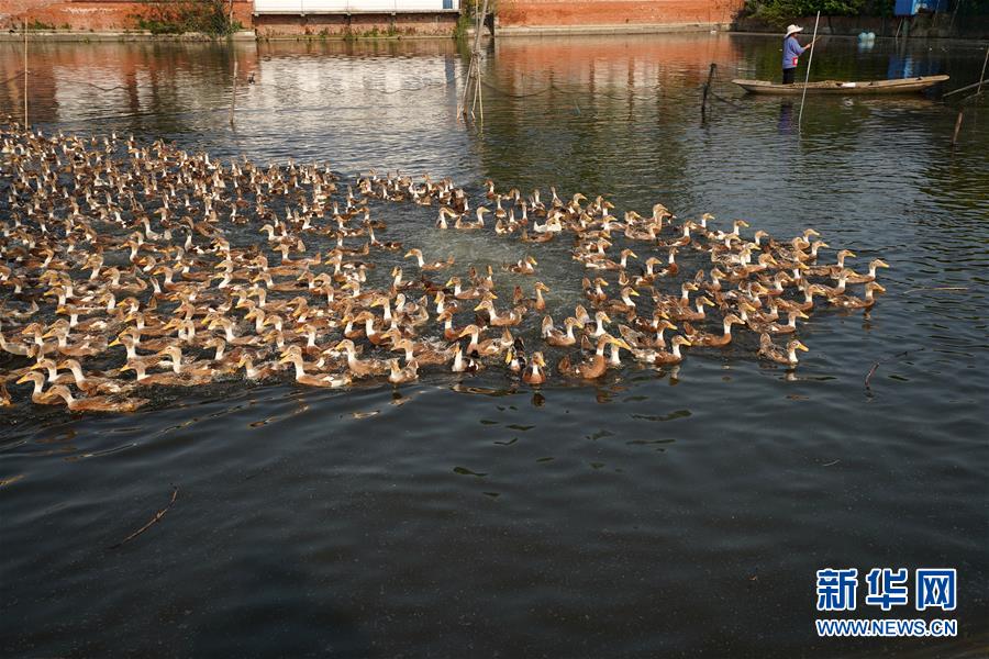 這是4月15日拍攝的江蘇高郵鴨良種繁育中心里的鴨群?!案哙]鴨蛋”是江蘇高郵的特色農(nóng)業(yè)名片。近年來(lái),當(dāng)?shù)卦诹挤N繁育、生態(tài)養(yǎng)殖、產(chǎn)品加工等方面加大力度,推動(dòng)高郵鴨蛋品牌化建設(shè),讓小鴨蛋成為帶動(dòng)農(nóng)戶致富的大產(chǎn)業(yè)。2019年,高郵市共計(jì)生產(chǎn)熟制鴨蛋產(chǎn)品近11.2億枚,年產(chǎn)值近17.68億元。新華社記者韓瑜慶攝