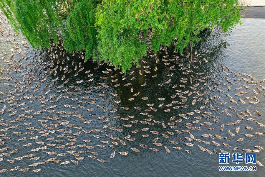 這是4月15日在高郵鴨良種繁育中心拍攝的鴨群(無人機照片)?!案哙]鴨蛋”是江蘇高郵的特色農(nóng)業(yè)名片。近年來,當(dāng)?shù)卦诹挤N繁育、生態(tài)養(yǎng)殖、產(chǎn)品加工等方面加大力度,推動高郵鴨蛋品牌化建設(shè),讓小鴨蛋成為帶動農(nóng)戶致富的大產(chǎn)業(yè)。2019年,高郵市共計生產(chǎn)熟制鴨蛋產(chǎn)品近11.2億枚,年產(chǎn)值近17.68億元。新華社記者季春鵬攝