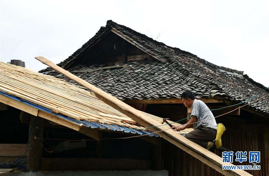 貴州省從江縣加榜鄉(xiāng)黨扭村村民在整治吊腳樓風貌(4月16日攝)。貴州省從江縣把人居環(huán)境整治作為脫貧攻堅工作的一項重要舉措來抓,對鄉(xiāng)村規(guī)劃范圍內長期無人居住的危房、廢棄禾倉、棚圈、柴草房和房前屋后的殘垣斷壁等進行清理整治,進行復墾復綠,同時開展農戶衛(wèi)生和村寨環(huán)境整治,做到鄉(xiāng)村環(huán)境干凈、衛(wèi)生、整潔,扮靚美麗鄉(xiāng)村。新華社記者楊文斌攝