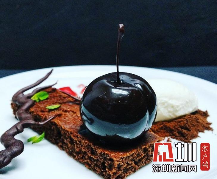 “煙灰缸”奶酪。煙灰缸內(nèi)放置著瓦尼拉蔓越莓慕斯,巧克力還有蛋白粉末制作的煙頭煙灰。