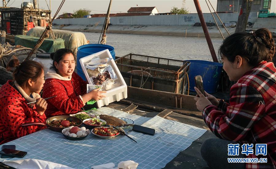 4月22日,馬花雨(中)在推薦海產(chǎn)品,她平時賣豬肉,兼職推銷海產(chǎn)品。新華社記者楊磊攝