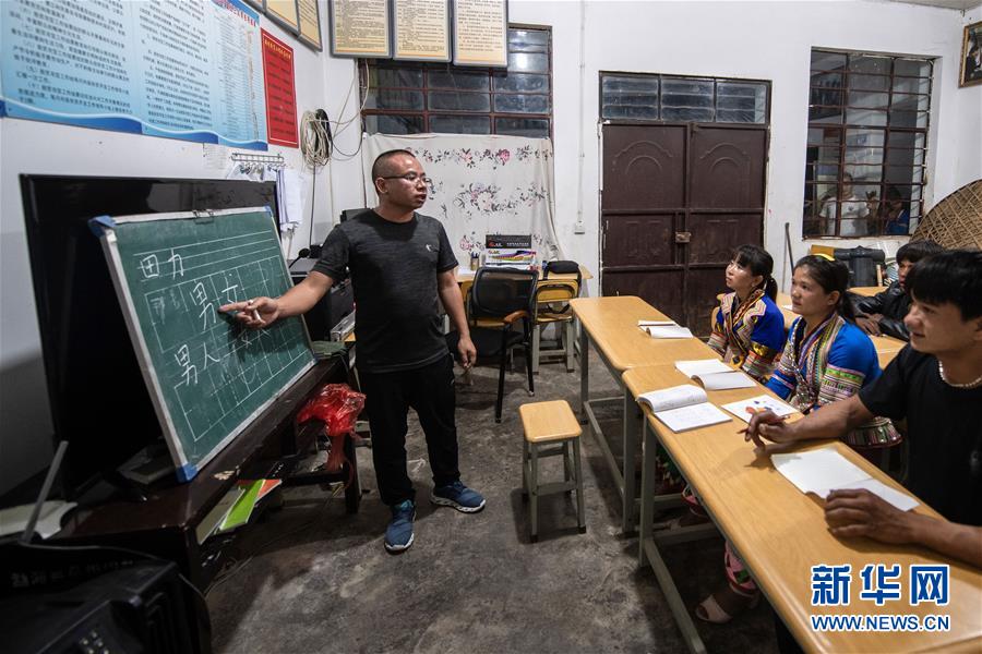 4月10日,在云南省勐海縣布朗山鄉(xiāng)曼囡村曼班三隊(duì),娜四(左二)在村里上夜校。新華社記者胡超攝