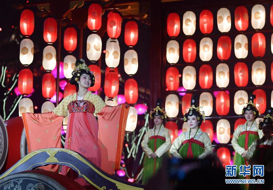 1月17日,演員在西安大唐不夜城步行街表演。 新華社記者 張博文 攝