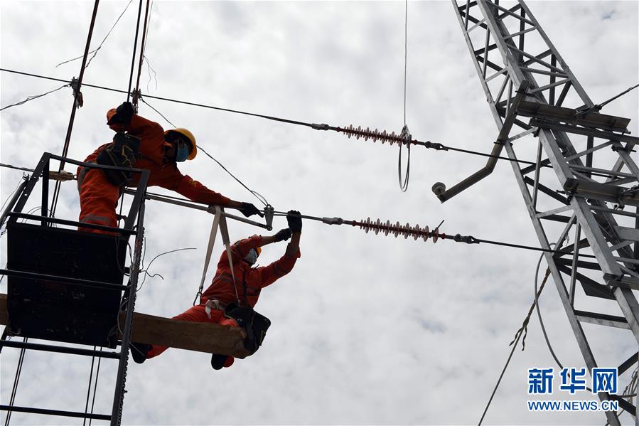 4月25日,在福建省寧德市屏南車站,施工人員開展接觸網(wǎng)調(diào)整作業(yè)。中鐵電氣化局集團(tuán)上海公司推動衢寧鐵路福建段通信工程、信號工程、電力工程、電氣化工程各環(huán)節(jié)協(xié)同復(fù)工復(fù)產(chǎn),目前來自河北、河南、四川等國內(nèi)10個省的900多名員工返崗就業(yè)。衢寧鐵路北起浙江省衢州市,南至福建省寧德市,全長379.2公里。新華社記者彭張青攝