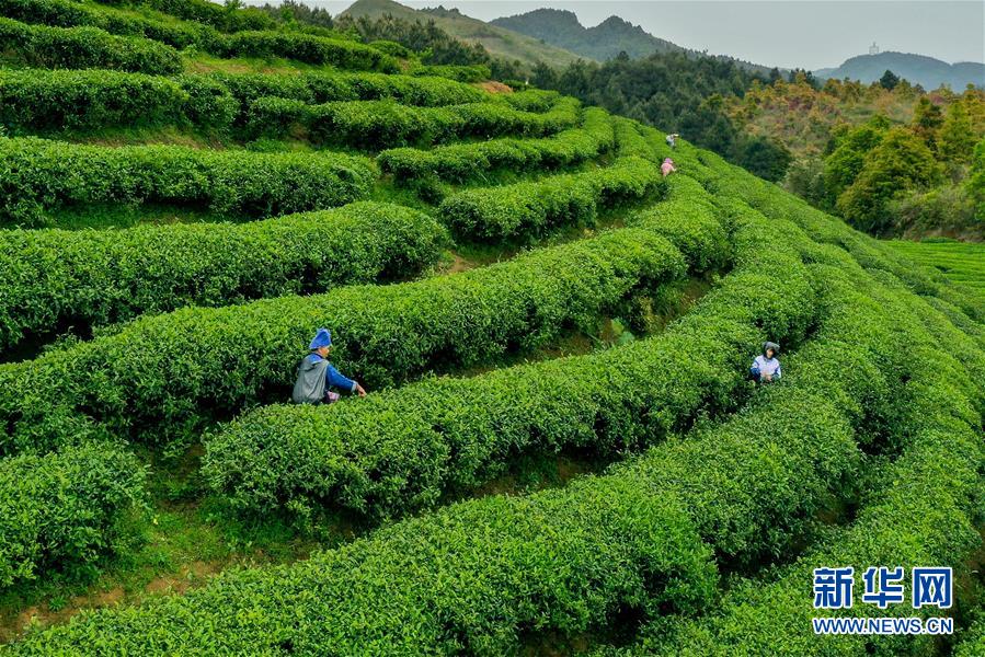 4月25日,茶農(nóng)在“扶貧茶園”內(nèi)采茶(無(wú)人機(jī)照片)。谷雨過后,在貴州省黔東南苗族侗族自治州丹寨縣“扶貧茶園”,茶農(nóng)搶抓農(nóng)時(shí)趕制春茶。丹寨縣創(chuàng)新產(chǎn)業(yè)扶貧模式,鼓勵(lì)社會(huì)公眾線上認(rèn)領(lǐng)茶園,再由茶園聘請(qǐng)當(dāng)?shù)刎毨魟?wù)工,為貧困戶創(chuàng)造茶園管理、采茶、制茶等就業(yè)機(jī)會(huì),幫助貧困戶增收。今年以來(lái),“扶貧茶園”已接受線上預(yù)訂600余畝,給當(dāng)?shù)?00余名村民提供了就業(yè)機(jī)會(huì)。新華社記者歐東衢攝