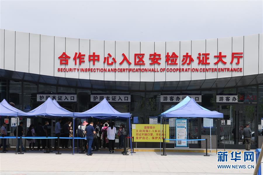 4月26日,在中哈霍爾果斯國際邊境合作中心中方入口處外正在排隊的游客和商販。3月以來,在做好疫情防控的前提下,新疆霍爾果斯“口岸經(jīng)濟”加快復蘇,每天出入其中的商販和游客逐漸增多。與此同時,位于中哈霍爾果斯國際邊境合作中心中方配套區(qū)內(nèi)的各家企業(yè)正抓緊時間生產(chǎn)。新華社記者顧煜攝