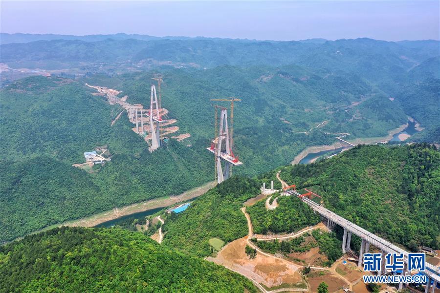 這是建設(shè)中的遵余高速湘江大橋(4月26日攝,無(wú)人機(jī)照片)。近日,由中鐵廣州局承建的貴州遵余高速湘江大橋工程在做好疫情防控的同時(shí),全力恢復(fù)生產(chǎn)建設(shè)。目前工程進(jìn)展順利,正在進(jìn)行主橋鋼梁架設(shè),預(yù)計(jì)將于8月底合龍。據(jù)了解,遵余高速湘江大橋橋梁全長(zhǎng)1700余米,主跨560米。新華社記者劉續(xù)攝