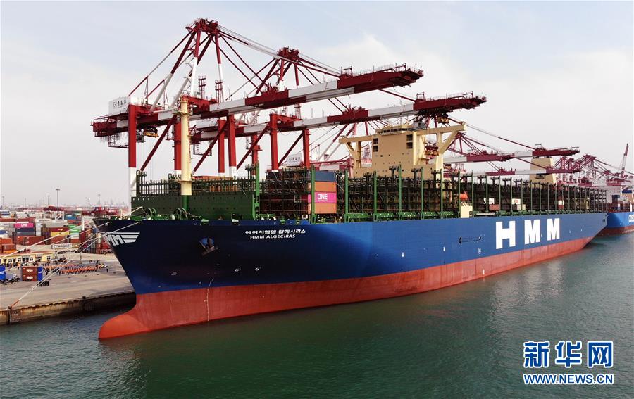 世界最大集裝箱船首航青島港 甲板面積相當于3.5個足球場